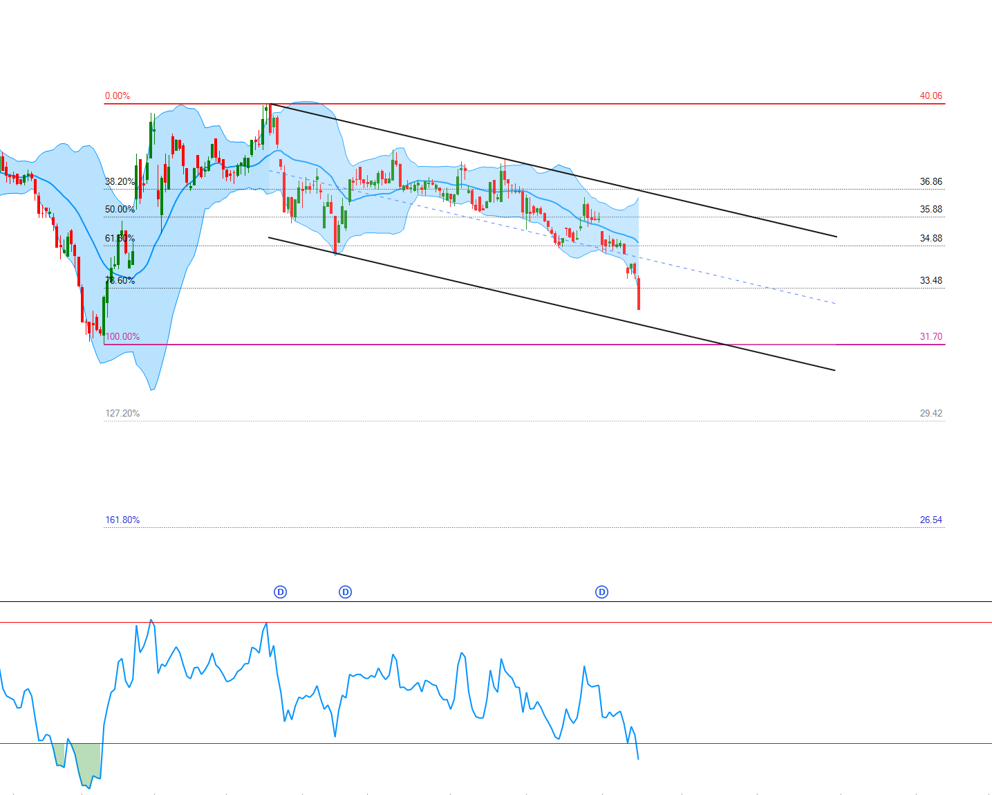 الاهم حاليا عدم الاقفال الاسبوعي اقل من 31.68 فهي تعني ااتجاه قائم الي 29.4 لكن الشارت اليومي ينبي عن قرب الوصول لمنطقة الهدف