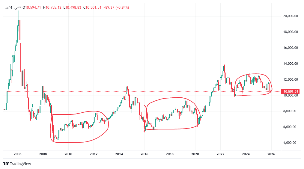 الدورة الثالثة اللي احنا فيها من قاع 9900 وشوي للحين سنتين فقط وقبلها سنة ونص من قمة 2022 لين قاع 2023