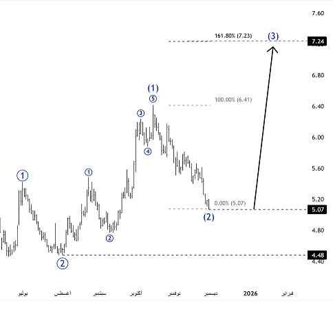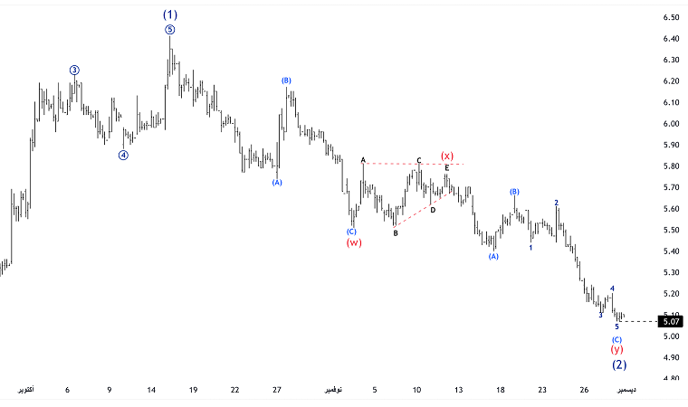الصوره الثانية توضح مسار الموجه الهابطه الاخيره الى هدف 5.07