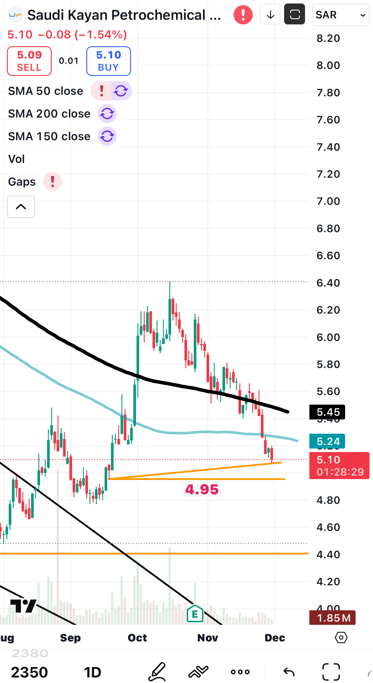 مسموح ينزل الى 4.95 ولا اظن