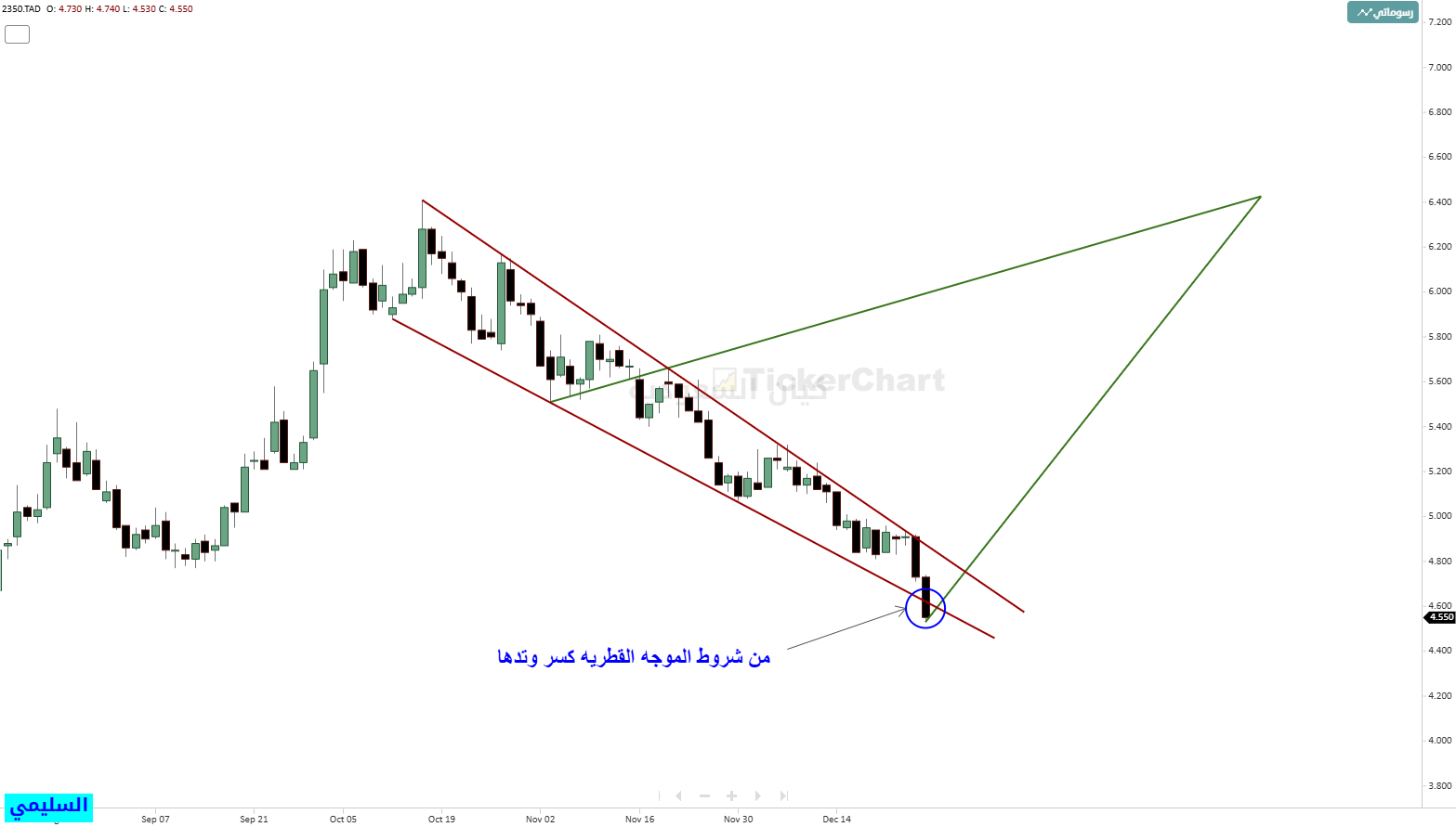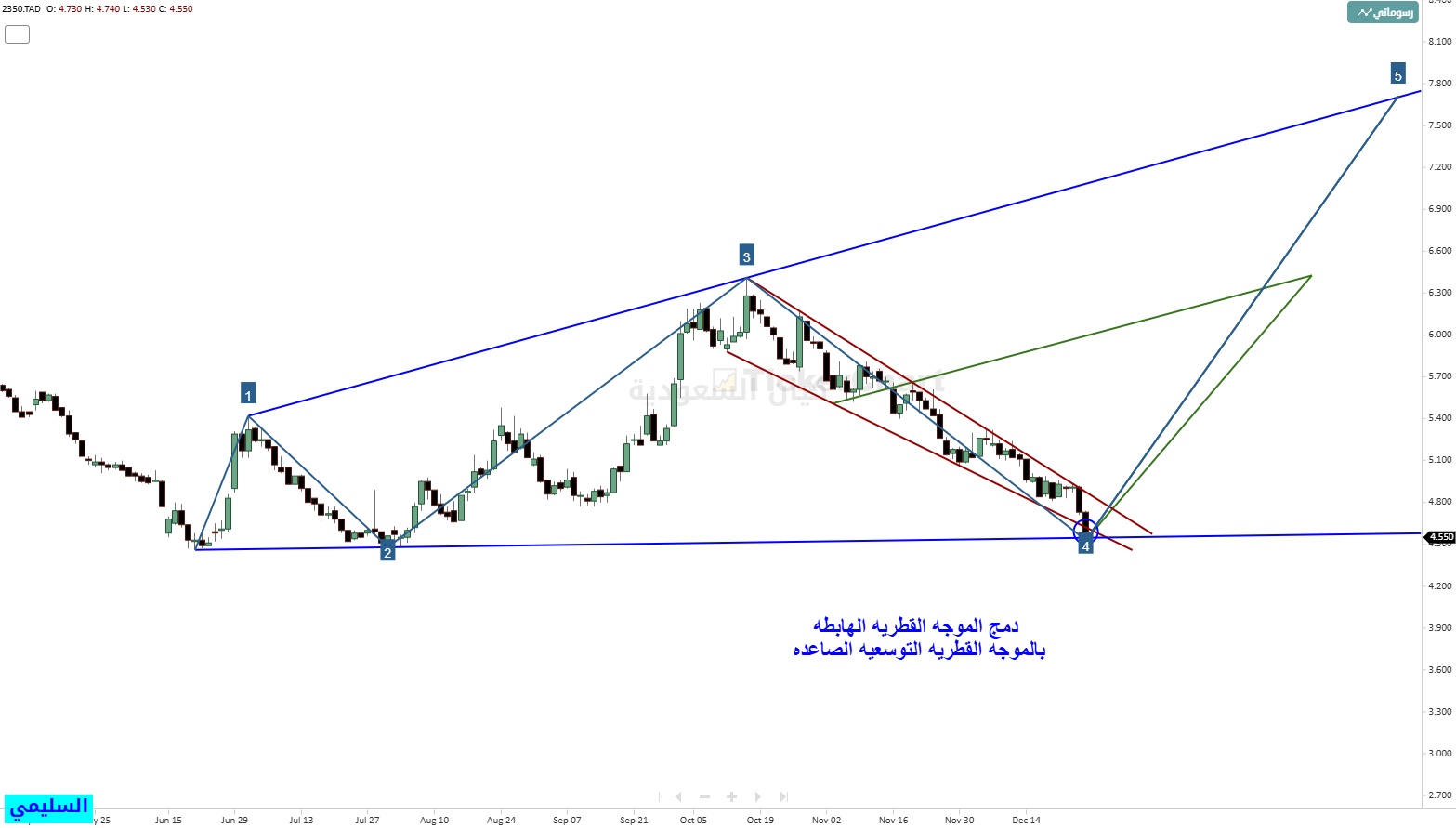 مادام السهم بسعر الشراء فطلوعه بطيء ويستخدم معه الموجه الهادئه التي تعطي فرصه للتجميع قبل ان يغادر منطقة التجميع ويتسارع