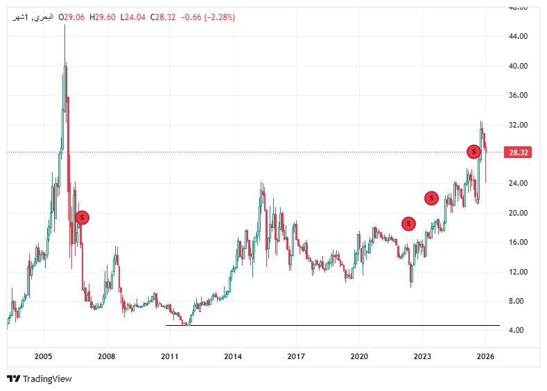 بالضبط وعندنا مقارنة بالاركان تابعناه مع السليمي من حول 4 ريال عام 2016 وصلنا 2026 صار التصحيح بين 10 و 12 الحين قبلها بين 10 و 8 قبلها بين 8 و 4