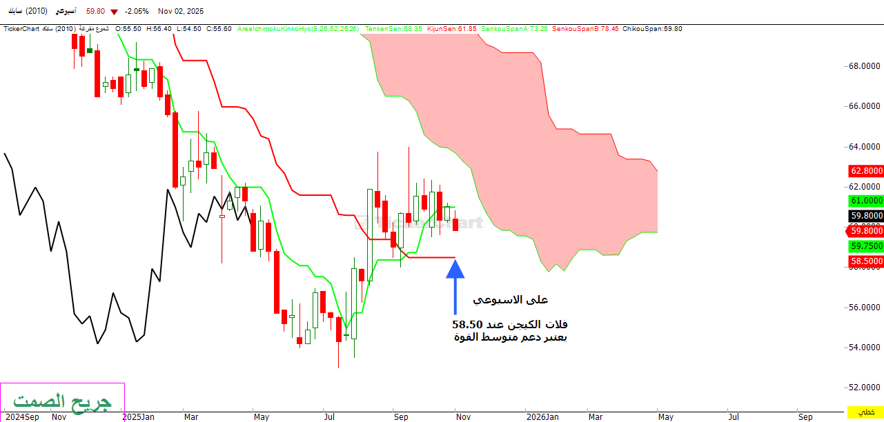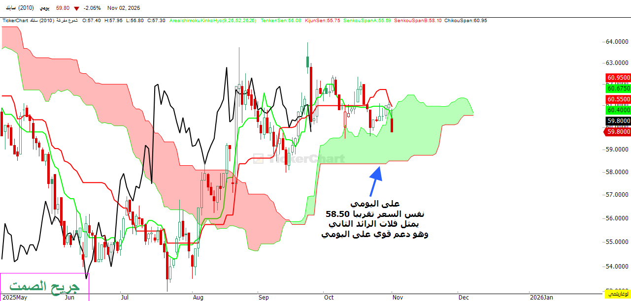 3- ان الحركة اليومية حققت هدفها عند 63.25 وعجز السهم عند محاولة الثبات مرة اخري