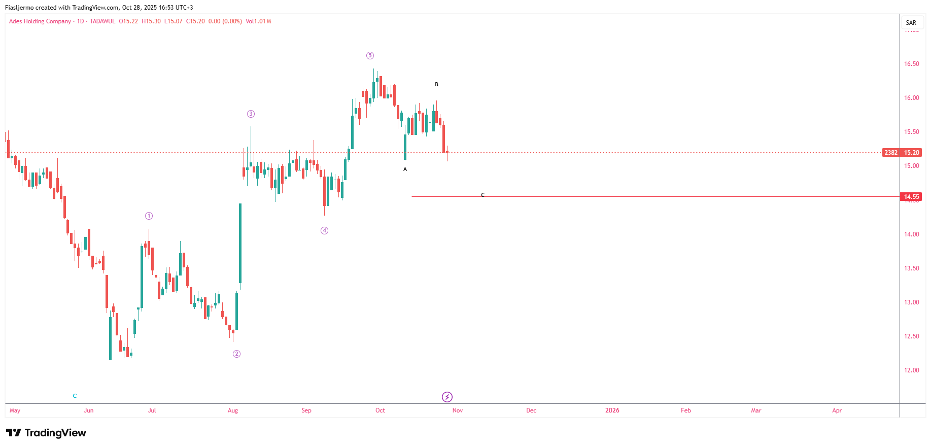 ابو عبدالله لاهنت هل يمكن ترقيم الموجة الأولى من قاع 12.16 او مازالت غير واضحه