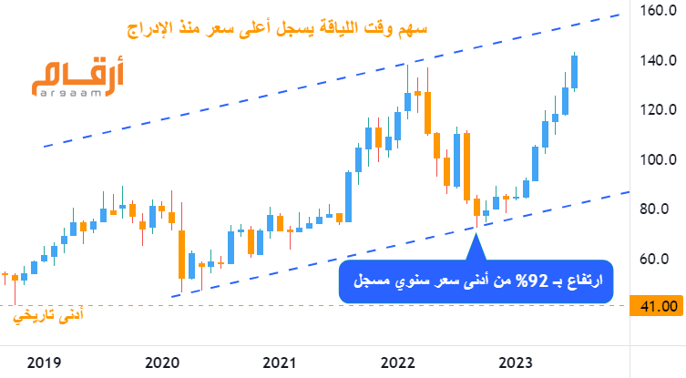 أداء سهم وقت اللياقة - وفقا للبيانات المتاحة في تداول