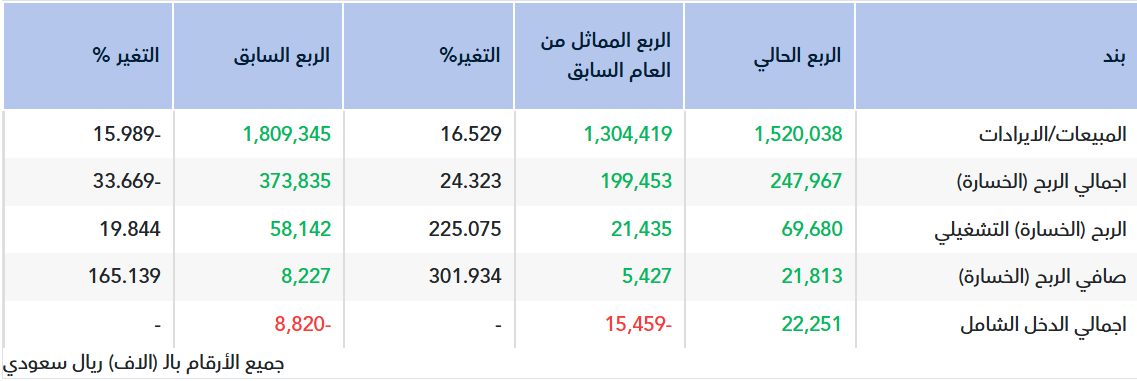 انخفضت المبيعات الإجمالية خلال الفترة بنسبة 16% بسبب تراجع المبيعات في قطاع التكييف بنسبة 23% وقطاع الإنشاءات بنسبة 39%.