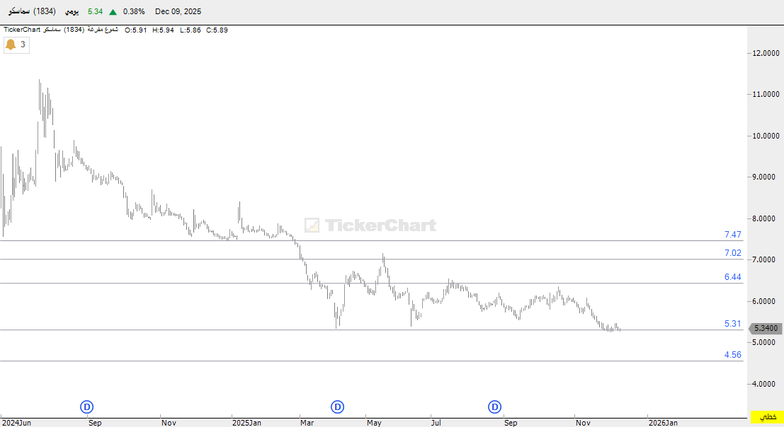 5. ‏سهم سماسكو يسجل أدنى سعر منذ الإدراج