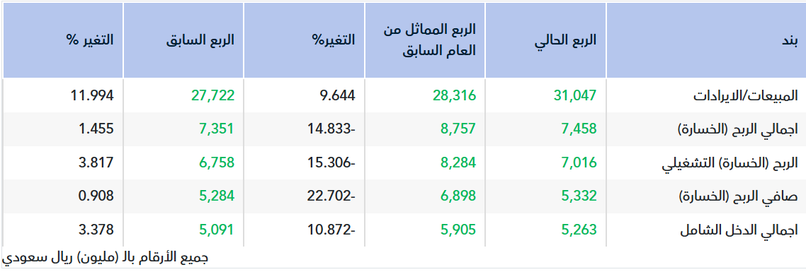 يعود الارتفاع في صافي الربح خلال الربع الحالي مقارنة بالربع السابق بشكل رئيسي الى الارتفاع في الإيرادات التشغيلية.